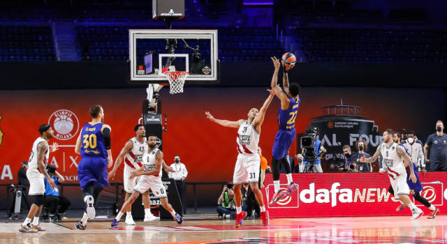 Milano risponde con james, poi ribas mette un'altra tripla che vale il più sette.